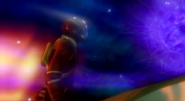The demo was shown with two screens to highlight the depth of asymmetrical co-op gameplay, and began with Kirk and Spock making a dramatic shuttle jump to reboard the Enterprise that is under attack. Navigating deadly mines, players control the breakneck jump, complete with a near-crash landing by Kirk (while Spock managed a near-perfect landing).