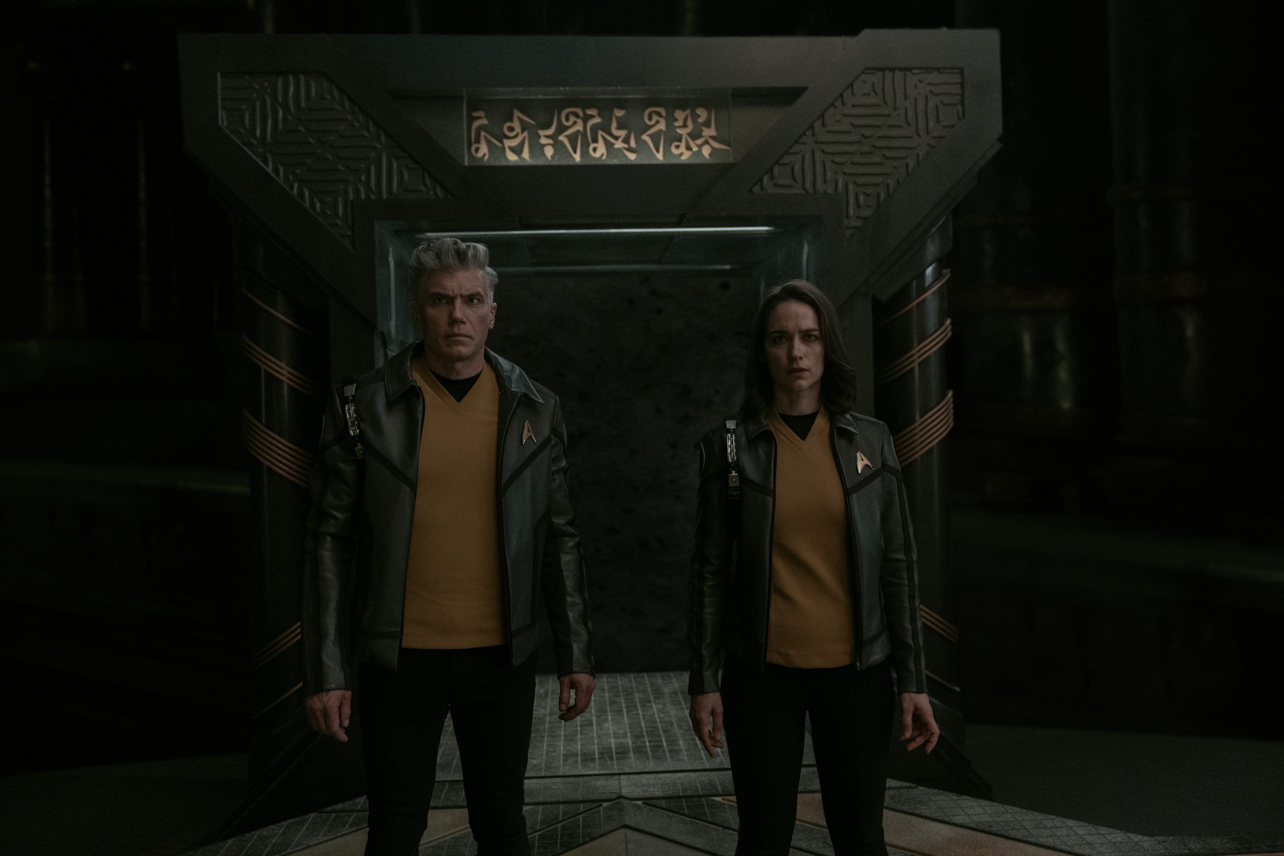 Melanie Scrofano as Batel and Anson Mount as Capt. Pike in season 3, Episode 10 of Strange New Worlds streaming on Paramount+. Photo Credit: Marni Grossman/Paramount+