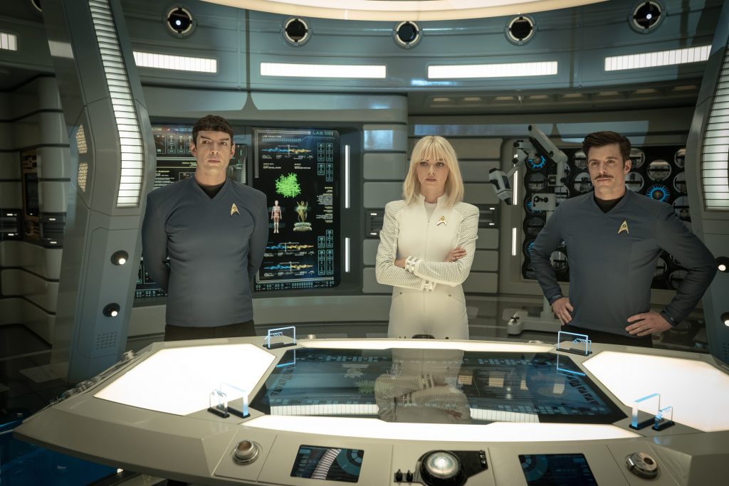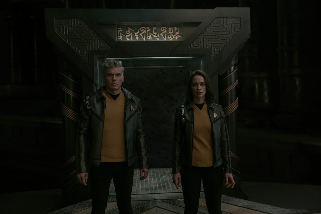 Babs Olusanmokun as MBenga in season 3, Episode 10 of Strange New Worlds streaming on Paramount+. Photo Credit: Marni Grossman/Paramount+Melanie Scrofano as Batel and Anson Mount as Capt. Pike in season 3, Episode 10 of Strange New Worlds streaming on Paramount+. Photo Credit: Marni Grossman/Paramount+Martin Quinn as Scotty in season 3, Episode 10 of Strange New Worlds streaming on Paramount+. Photo Credit: Marni Grossman/Paramount+Carol Kane as Pelia in season 3, Episode 10 of Strange New Worlds streaming on Paramount+. Photo Credit: Marni Grossman/Paramount+Jess Bush as Chapel in season 3, Episode 10 of Strange New Worlds streaming on Paramount+. Photo Credit: Marni Grossman/Paramount+Ethan Peck as Spock in season 3, Episode 10 of Strange New Worlds streaming on Paramount+. Photo Credit: Marni Grossman/Paramount+Paul Wesley as Kirk and Dan Jeanotte as Sam Kirk in season 3, Episode 10 of Strange New Worlds streaming on Paramount+. Photo Credit: Marni Grossman/Paramount+Ethan Peck as Spock and Christina Chong as Laan in season 3, Episode 10 of Strange New Worlds streaming on Paramount+. Photo Credit: Marni Grossman/Paramount+Ethan Peck as Spock and Melissa Navia as Ortegas in season 3, Episode 10 of Strange New Worlds streaming on Paramount+. Photo Credit: Marni Grossman/Paramount+Anson Mount as Capt. Pike and Melanie Scrofano as Batel in season 3, Episode 10 of Strange New Worlds streaming on Paramount+. Photo Credit: Marni Grossman/Paramount+Anson Mount as Capt. Pike and Melanie Scrofano as Batel in season 3, Episode 10 of Strange New Worlds streaming on Paramount+. Photo Credit: Marni Grossman/Paramount+Rebecca Romijn as Una in season 3, Episode 10 of Strange New Worlds streaming on Paramount+. Photo Credit: Marni Grossman/Paramount+Rebecca Romijn as Una and Anson Mount as Capt. Pike in season 3, Episode 10 of Strange New Worlds streaming on Paramount+. Photo Credit: Marni Grossman/Paramount+Rebecca Romijn as Una, Anson Mount as Capt. Pike and Melissa Navia as Ortegas in season 3, Episode 10 of Strange New Worlds streaming on Paramount+. Photo Credit: Marni Grossman/Paramount+Ethan Peck as Spock, Jess Bush as Chapel and Dan Jeanotte as Sam Kirk in season 3, Episode 10 of Strange New Worlds streaming on Paramount+. Photo Credit: Marni Grossman/Paramount+Melanie Scrofano as Batel in season 3, Episode 10 of Strange New Worlds streaming on Paramount+. Photo Credit: Marni Grossman/Paramount+Ethan Peck as Spock, Melanie Scrofano as Batel, Jess Bush as Chapel, Anson Mount as Capt. Pike and Dan Jeanotte as Sam Kirk in season 3, Episode 10 of Strange New Worlds streaming on Paramount+. Photo Credit: Marni Grossman/Paramount+