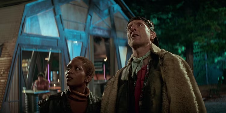 Two characters, in particular, benefit immensely from the novel’s expanded scope: Lily Sloane and Zefram Cochrane, played by Alfre Woodard and James Cromwell in the movie, respectively. The novel delves into Lily’s backstory, fleshing out her motivations for working with the brilliant but unpredictable Cochrane and establishing her as a steely survivor of World War III. Her toughness is rooted in profound loss; her mother died of cancer, a tragedy exacerbated by the fact that medicine that would have saved her was no longer commonplace in the chaotic post-WWIII world. This tragic background — plus the ability to get inside Lily’s head and learn how she thinks and feels about the post-war years and her time with Picard — provides vital context for her cynicism and resilience, making her work on the Phoenix all the more potent.