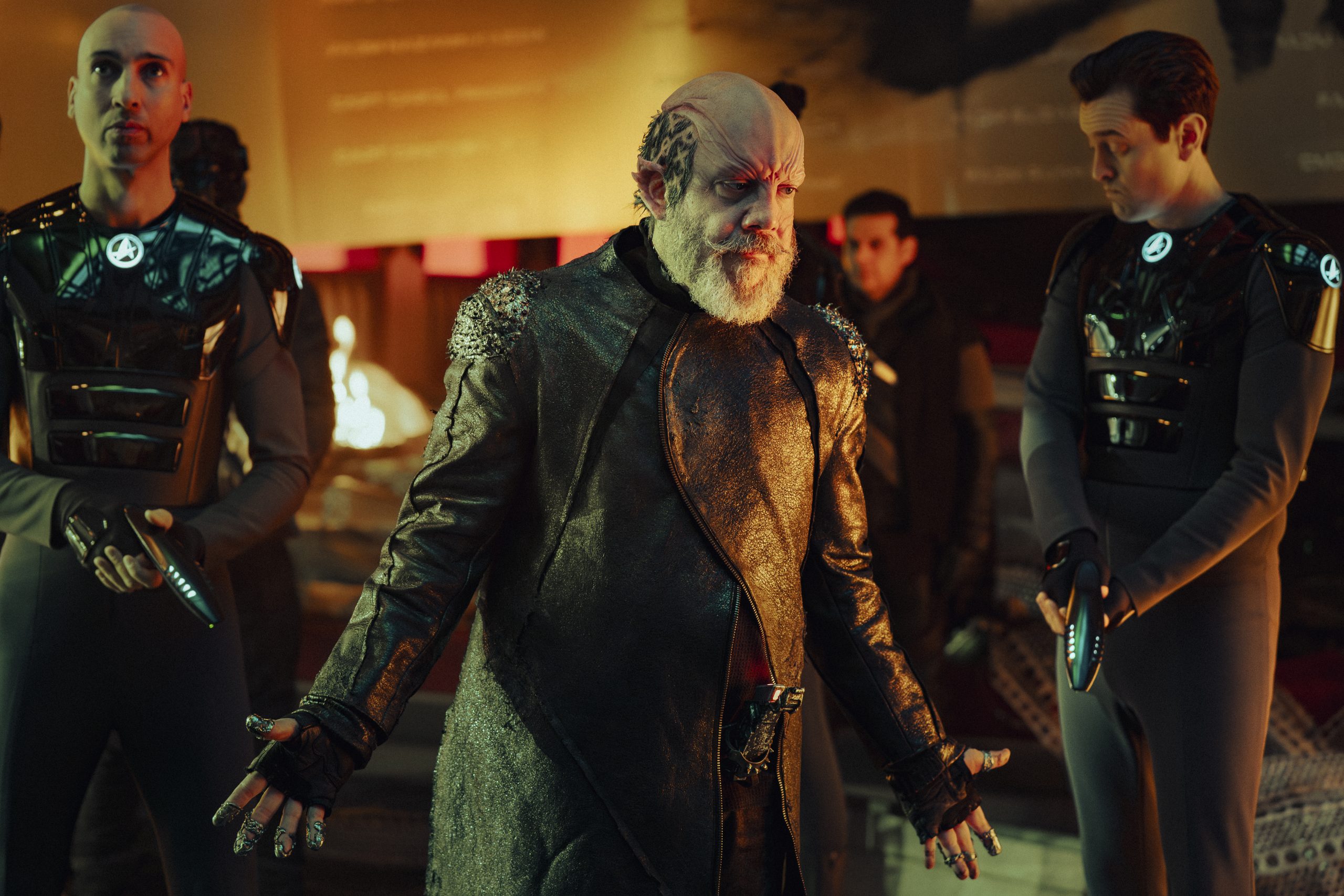 Hundreds of planets and billions of souls are threatened by the stranglehold Nus Braka (Paul Giamatti) has on the Federation thanks to his fleet of Omega mines. While he holds the knife at the Federation’s throat, he wants to put his nemesis, Nahla Ake (Holly Hunter) and the Federation on trial for the organization’s supposed crimes against the galaxy.